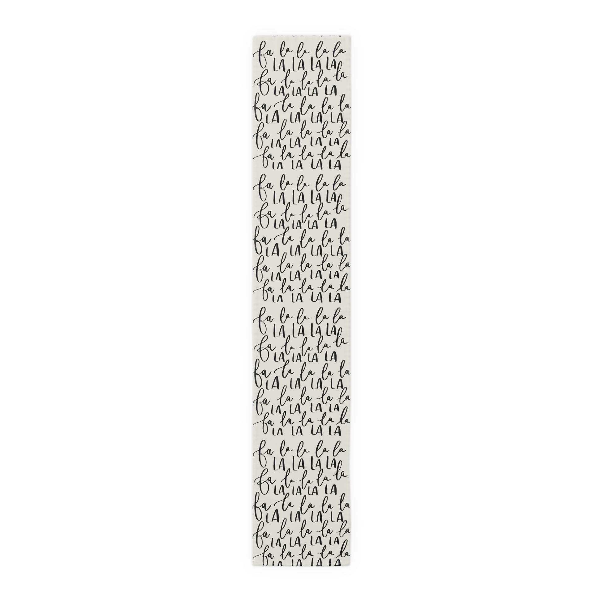 Add a festive touch to your dining table with this Fa La La La La table runner! Perfect for holiday gatherings and celebrations, this product gives off a cozy and cheerful vibe. Ideal for those who love to decorate for the holiday season.